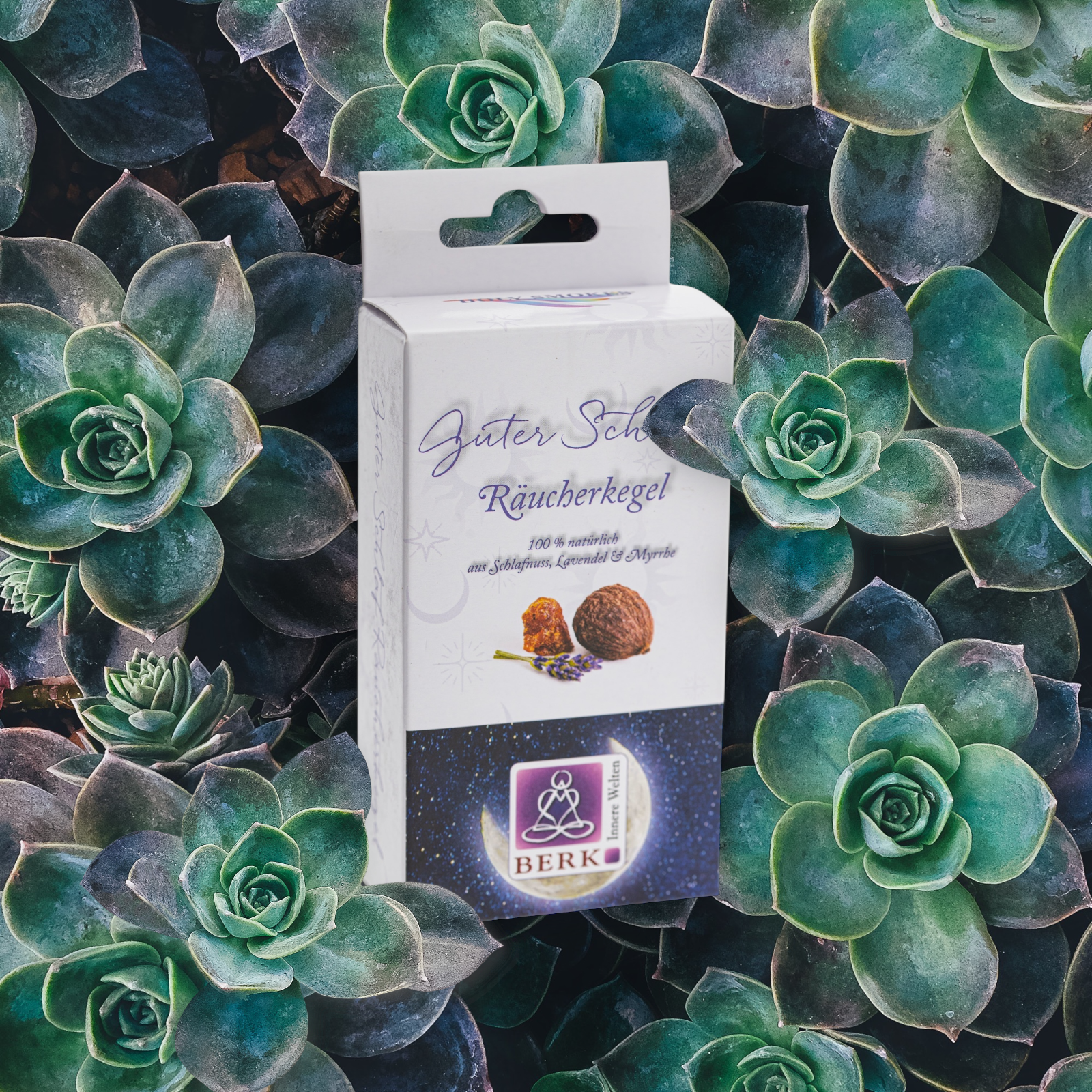 Der zarte Rauch entfaltet eine wohltuende, schützende Atmosphäre – ideal, um nach einem langen Tag loszulassen und den Körper und die Seele in Einklang zu bringen. Lavendel beruhigt die Sinne, Myrrhe harmonisiert die Energien, und die feine Maidalnuss rundet den Duft mit einer warmen, süßen Note ab.